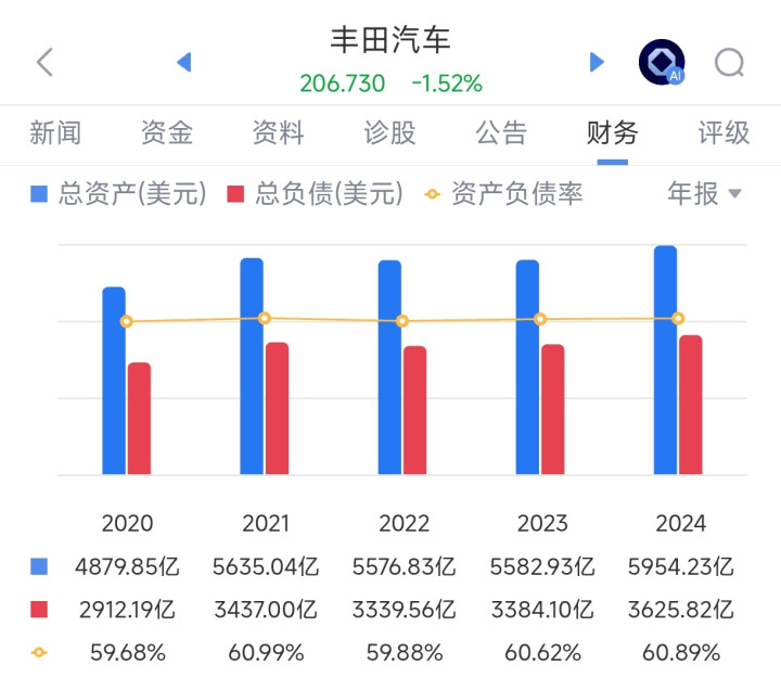 丰田汽车,金钱欠债率60.92%
