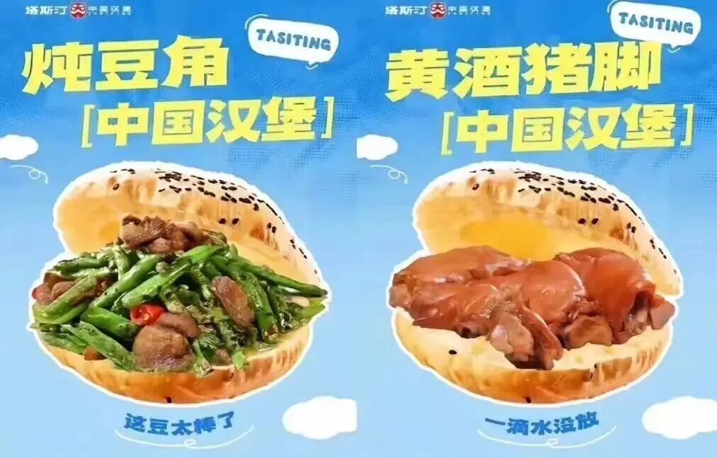 除了传统汉堡中的牛肉饼、炸鸡块,塔斯汀还推出了麻婆豆腐汉堡、北京烤鸭汉堡、香肉丝真有鱼汉堡等,连接制造话题和簇新感。