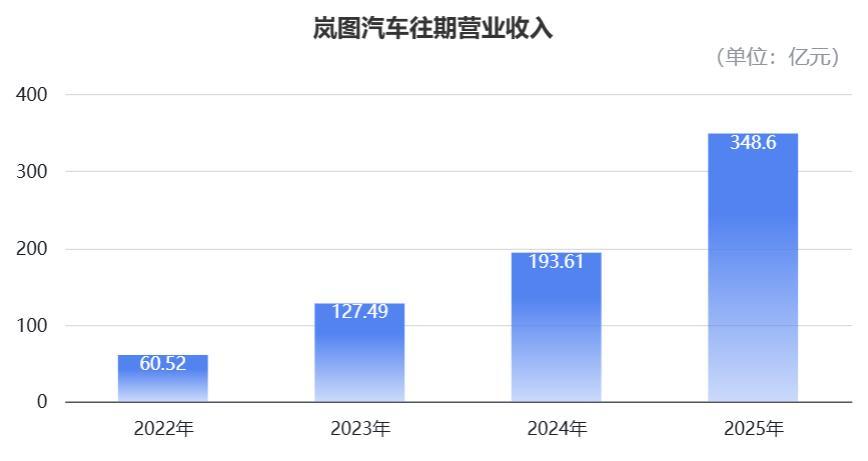 收入层面,岚图汽车的买卖收入从2022年的60.5亿元,猛增至2023年的127.5亿元,并进一步在2024年达到193.6亿元。
