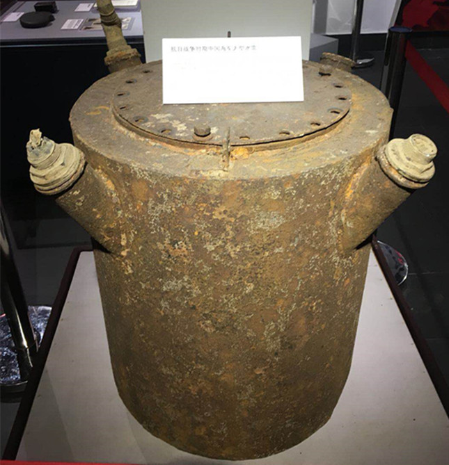 上海淞沪抗战挂念馆展出的大型国产水雷原件