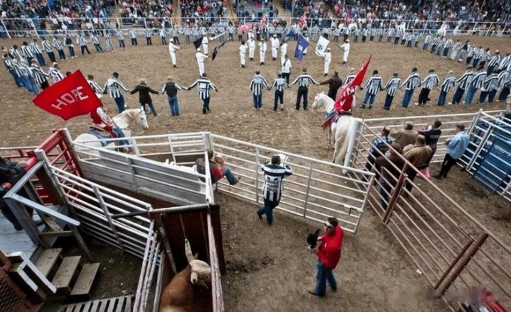 监狱对外宣传闻这是“牛仔竞技”,是“传统文化”。但对犯东说念主来说,他们和牛莫得实质区分。