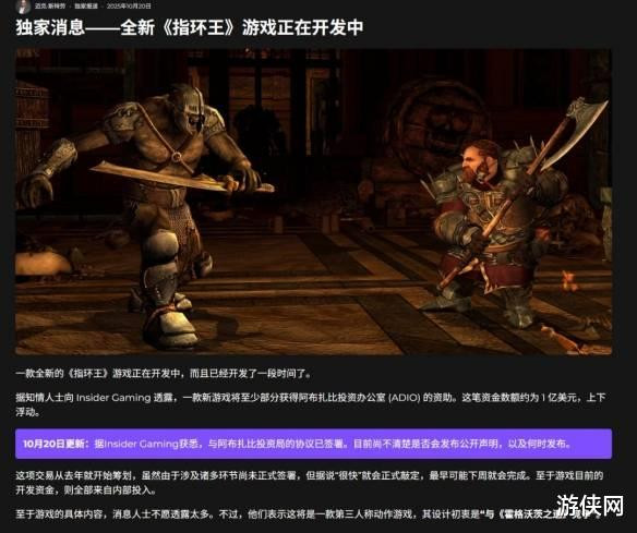 此前于2025年10月,Insider Gaming曾初次闪现有一款由阿布扎比投资的新《指环王》名目。这次音讯则进一步明确了汲引商身份。近期另有传奇称,《天堂:提拔》系列汲引商战马责任室(同属Embracer集团)也在汲引一款《指环王》游戏。爆料指出,这应是两款不同的作品。