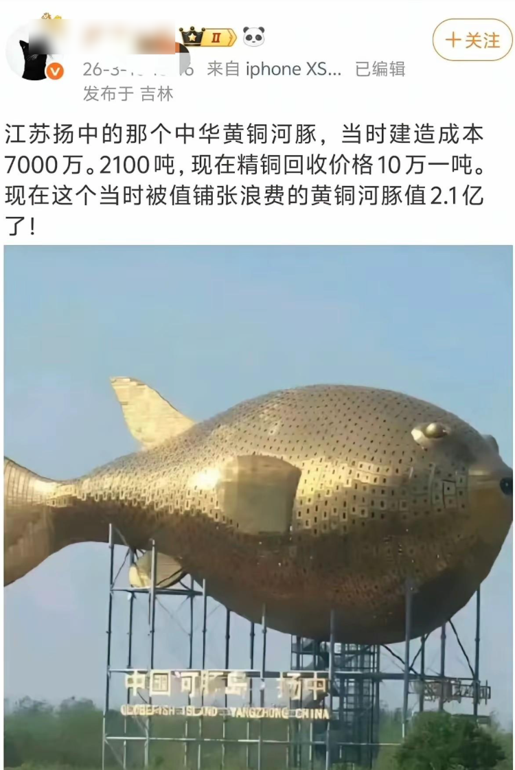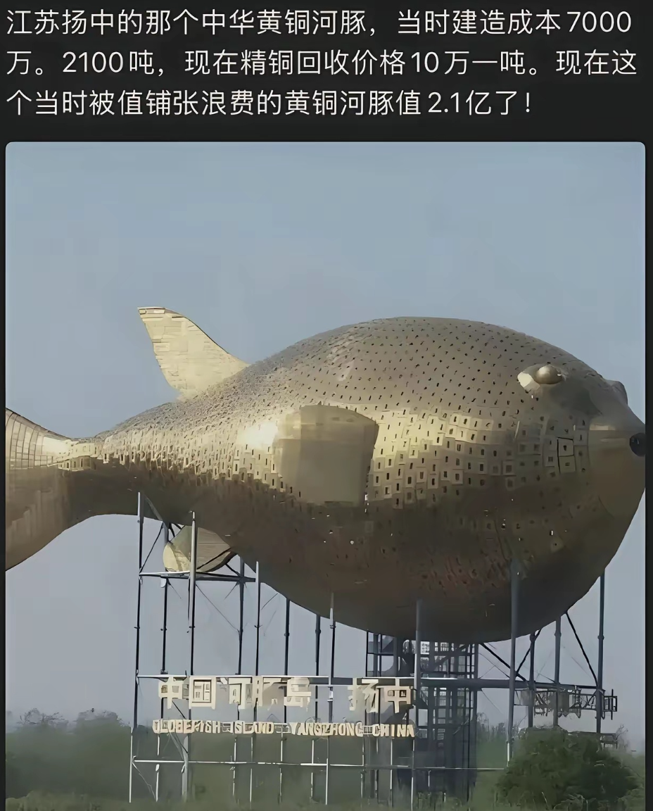 提及昔时被全网吐槽的江苏扬中为园博会打造的巨型铜河豚雕像,许多东谈主齐有印象,因为这个雕像一出现,就被网友们贴上了一个标签——太浮滥。