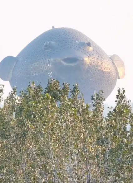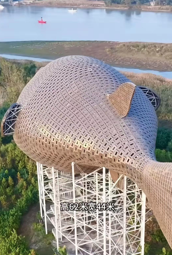 这座河豚塔坐落于扬中西沙岛,是2013年为第八届江苏省园艺展览会打造的地标成就,2016年谨慎完工。