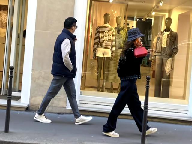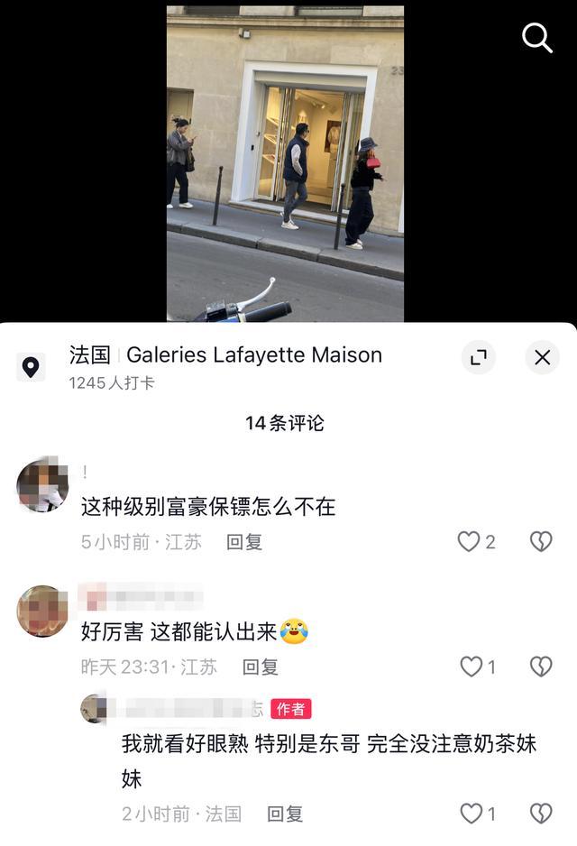3月18日,有网友在法国巴黎街头,偶遇刘强东与太太章泽天。