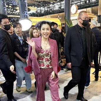 近日甘比现身上海,看着春光满面眼角带俏,满盈不像40多岁生了3个孩子的面容。