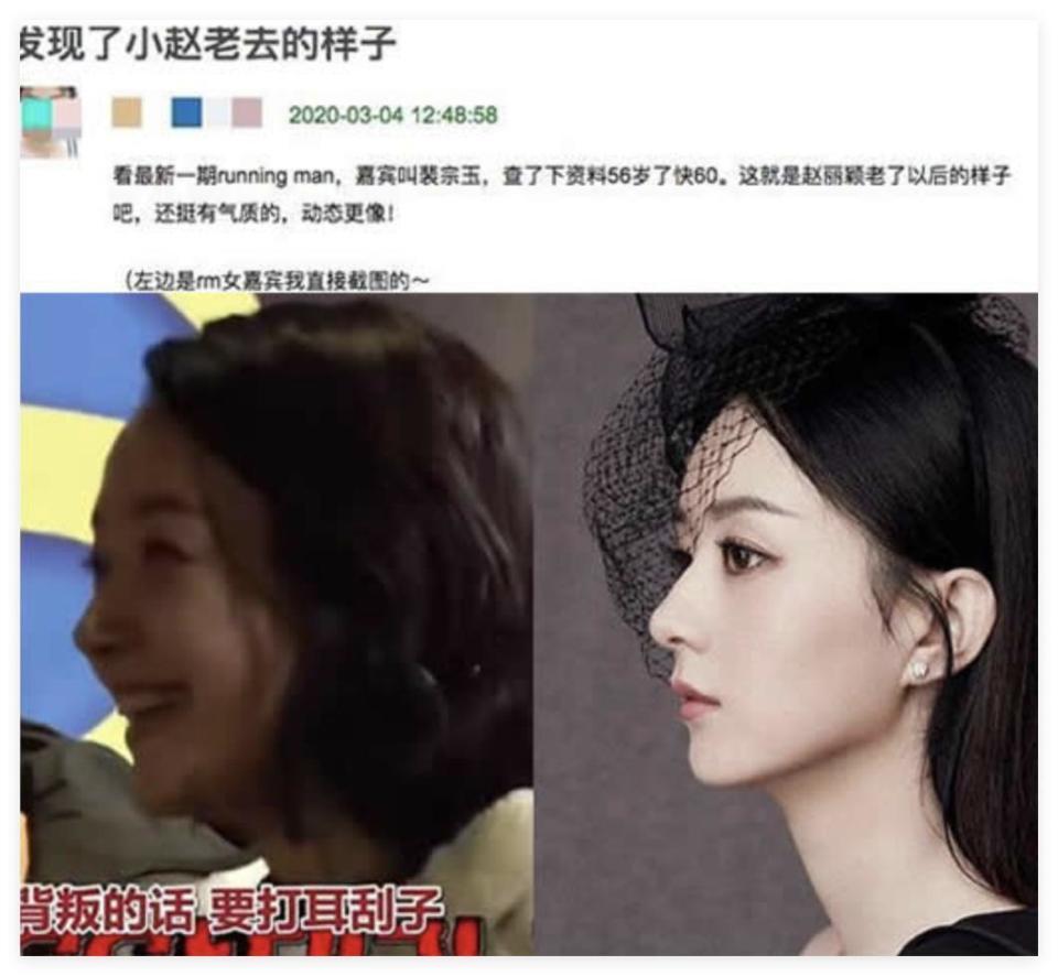 2020年裴宗玉上综艺《running man》因为撞脸赵丽颖还激发了不小究诘,网友直言这不即是老去的赵丽颖的容貌么?