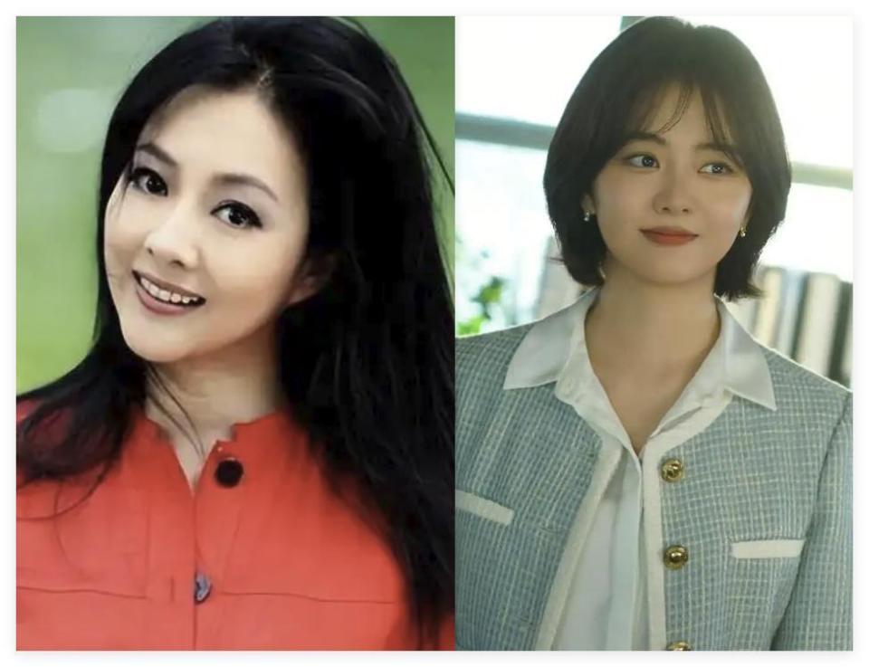 两东谈主的外形天然相似但气质皆备不同,梁丽是柔媚风情的,年青的工夫就很有进修女性的韵味,谭松韵则是可儿的,30多岁照旧很像小女生。