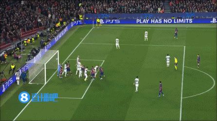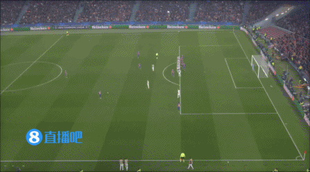仍是第22分钟,巴萨角球契机, 球罚向禁区,前点刚刚替补登场的阿劳霍头球攻门击中边网。↓