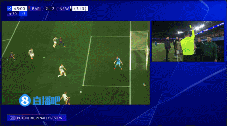 第45+4分钟,禁区内特里皮尔拉拽导致抢点的拉菲尼亚倒地,VAR介入,主裁判不雅看大屏幕后判罚点球,特里皮尔吃到黄牌。↓