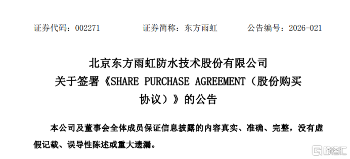 3月17日晚间,东方雨虹(002271.SZ)发布公告称,为积极推动公司国际化战术,陆续拓展外洋市集,公司全资子公司香港东方雨虹与Aliaxis等卖方签署《股份购买公约》,拟以约1.6410亿港元(约合1.4476亿元东谈主民币)收购全国五金塑胶厂有限公司100%股权。交游完成后,全国五金将成为东方雨虹的全资子公司。