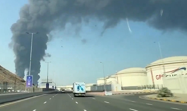 16日,富查伊拉港遇袭后动怒冒烟 视频截图