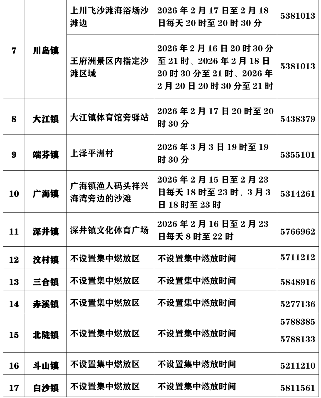 二、各镇(街)烟花炮竹市欢燃放区域实时刻
