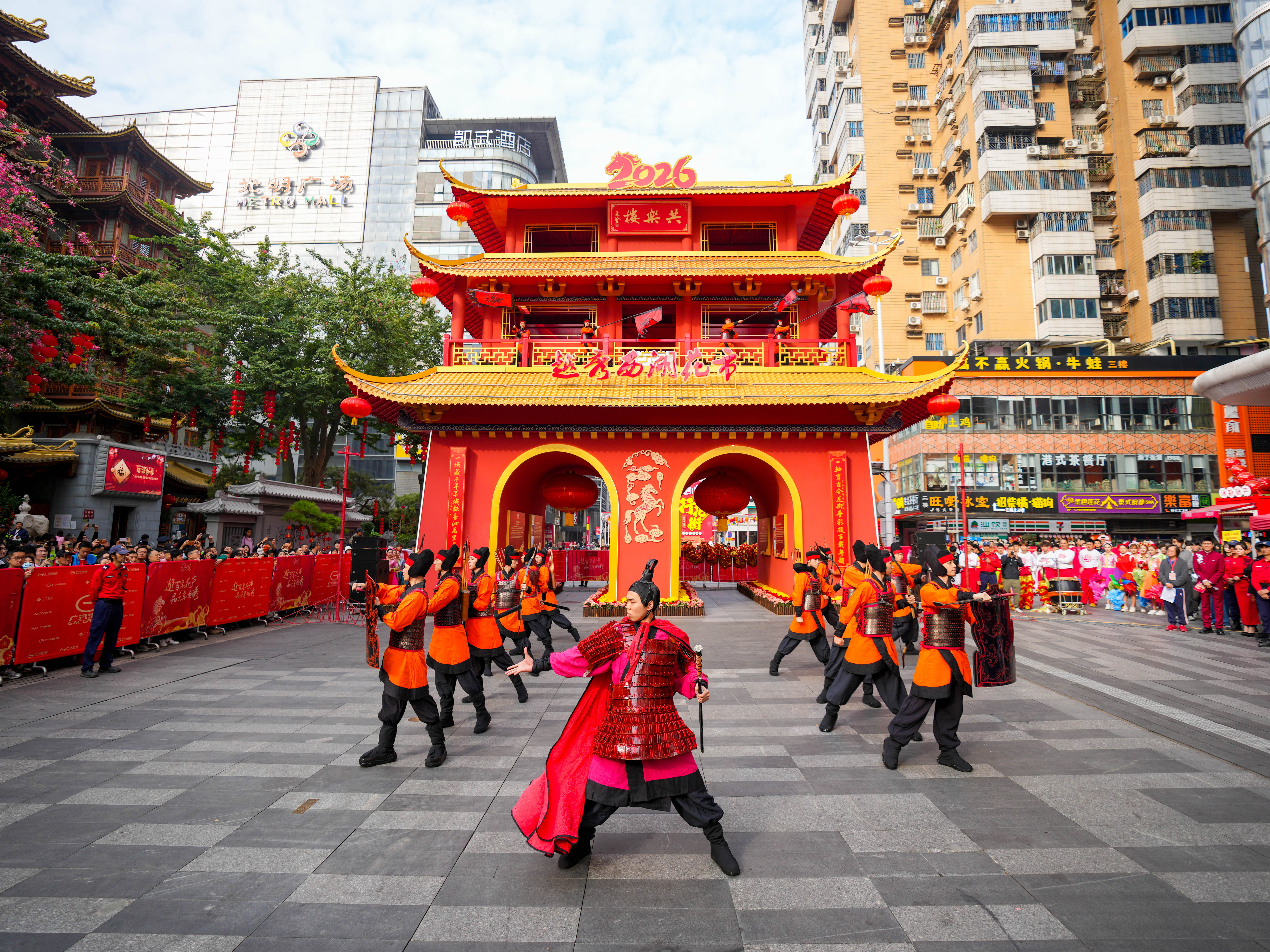 2月13日,广州市越秀区西湖路广百广场前。跟着一声“开市”,瑞狮腾踊,饱读点密集,2026年越秀西湖花市认真开锣,也宣告广州十一区传统迎春花市全面启幕。本年,广州市商场监管局集中越秀区政府等举办全市并吞开市典礼,让百年花市的年味更浓、规格更高。